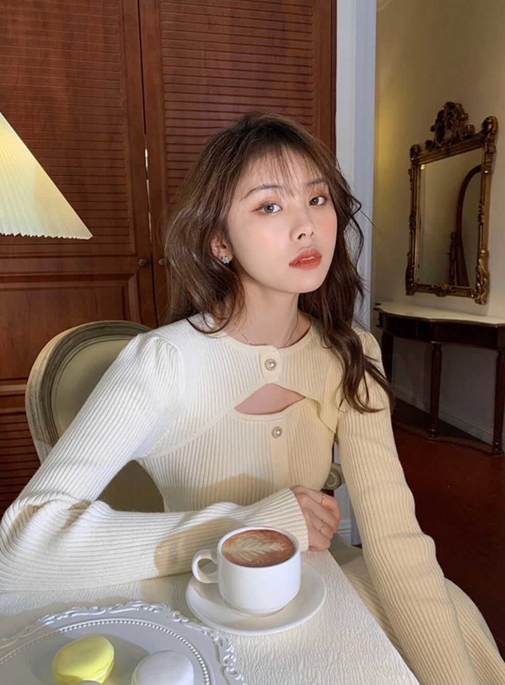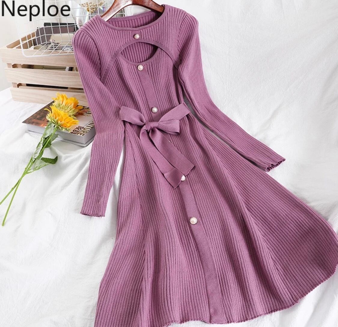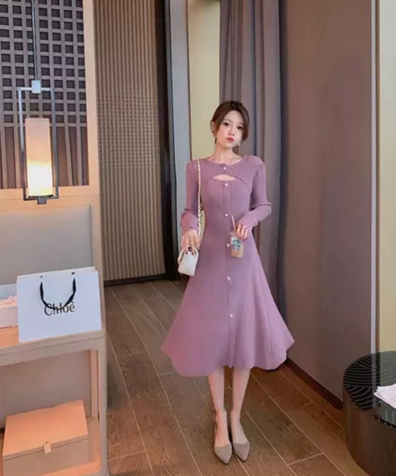 送料無料【即納】♡お上品なセクシーニット大人可愛い愛されワンピース♡ラベンダー ホワイト OL お呼ばれ 二次会 結婚式 お茶会