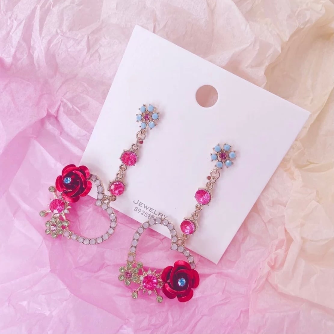 ロココ調の色使いと装飾のハート型のハンドメイドピアスになります♡