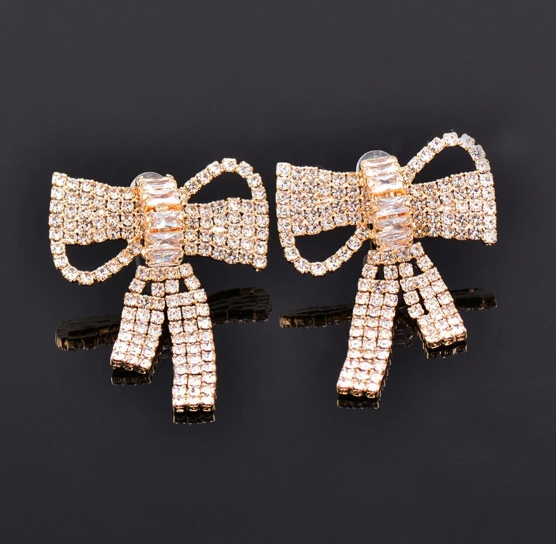 【即納】♡シルバー925刻印入りのおリボン高品質人口ダイヤモンドピアス♡シルバー925