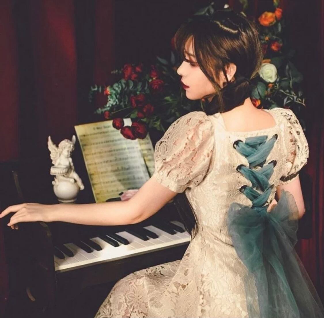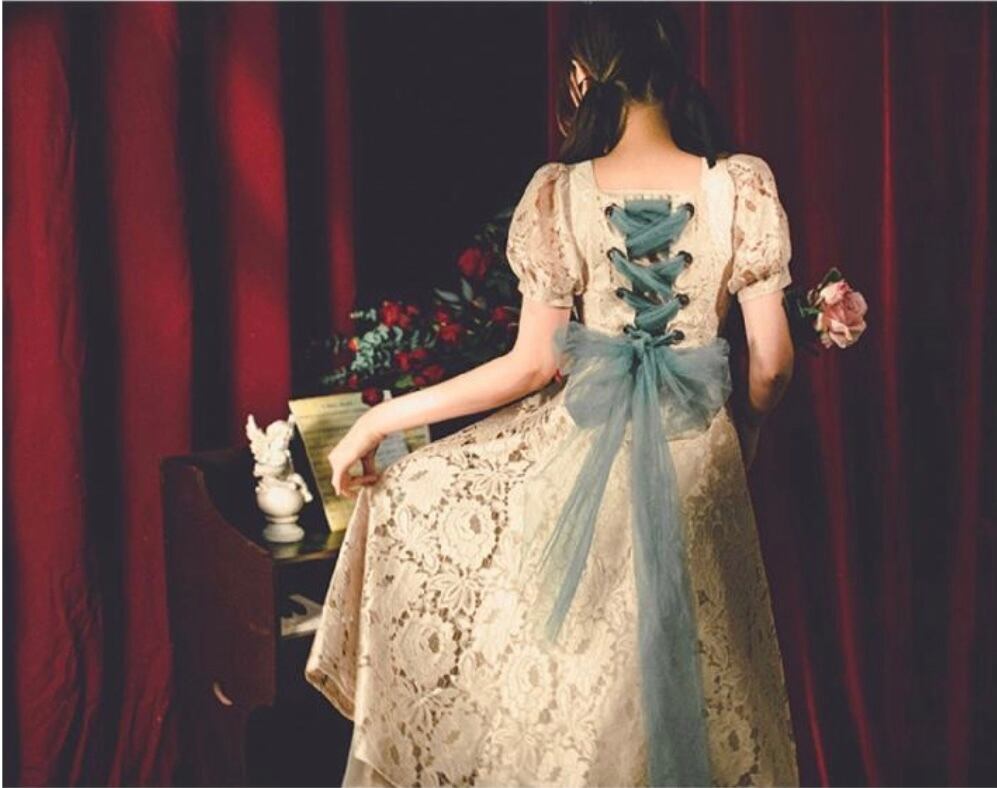 クラシカルなベージュのレーシーなワンピースになります♡