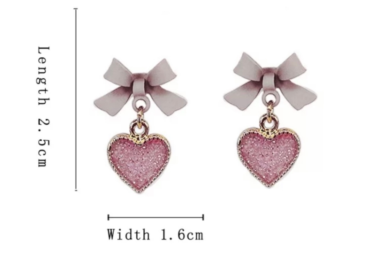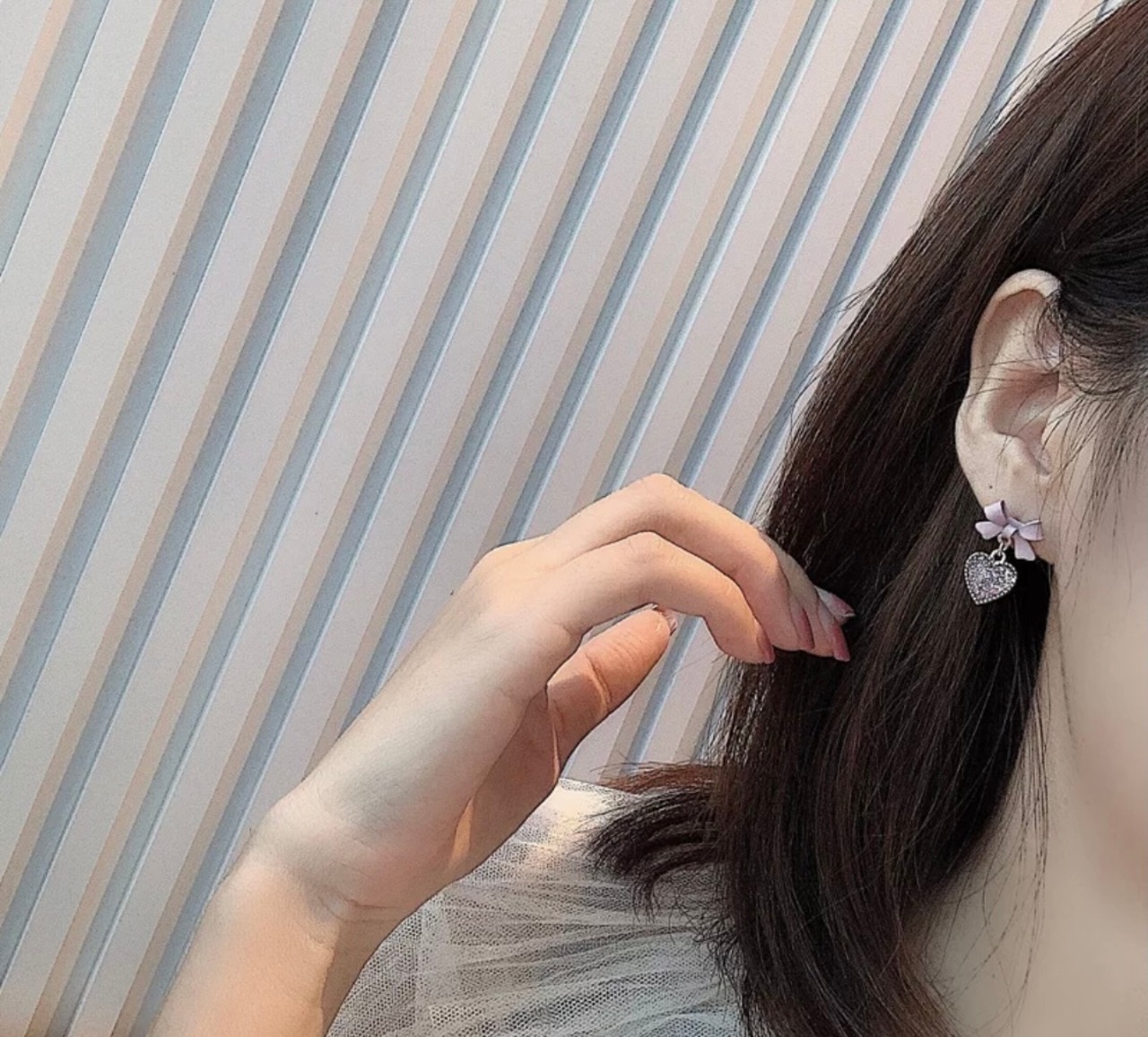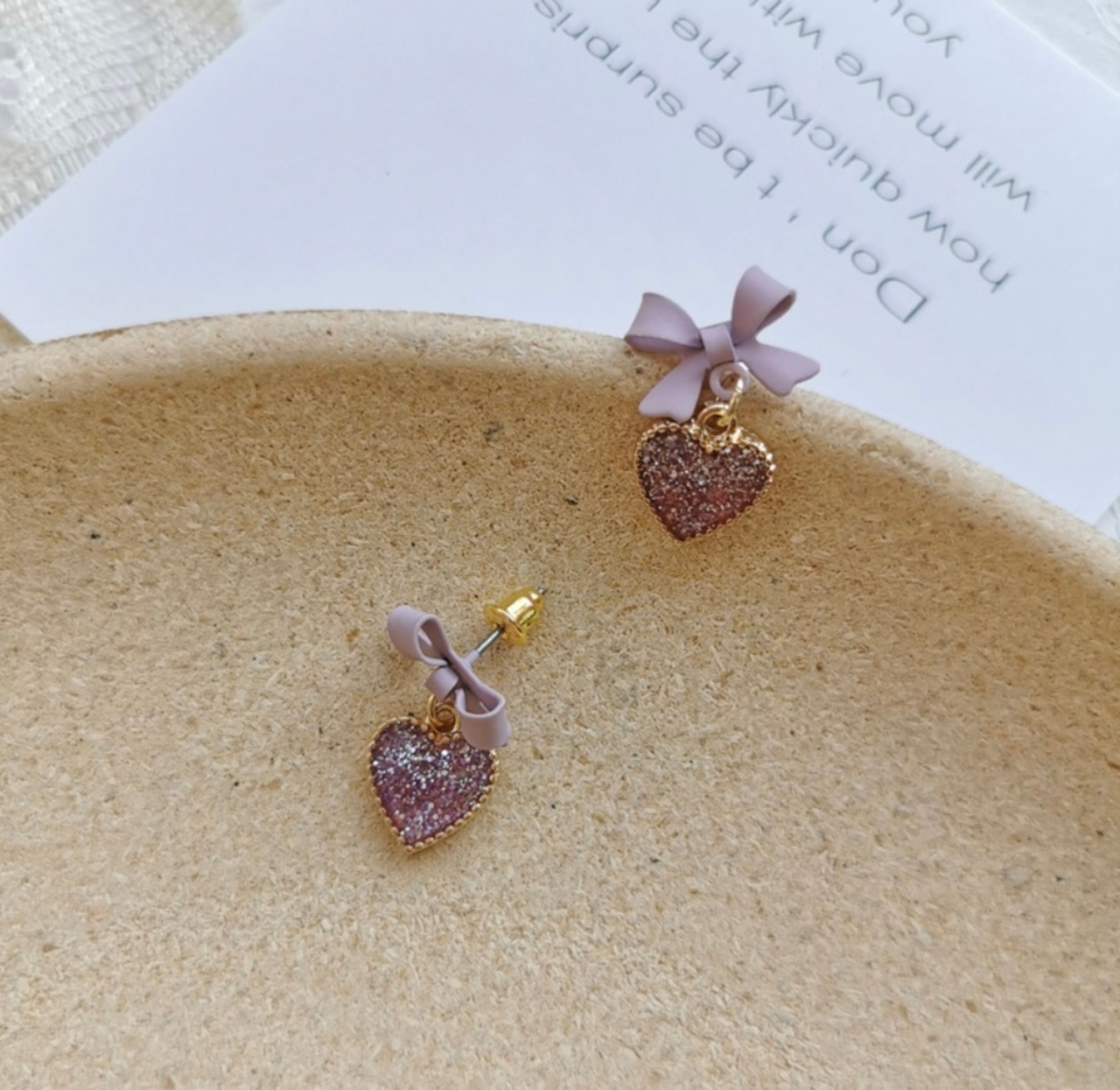 ラベンダーカラーの立体的なおリボンとハートのイヤリングになります♡