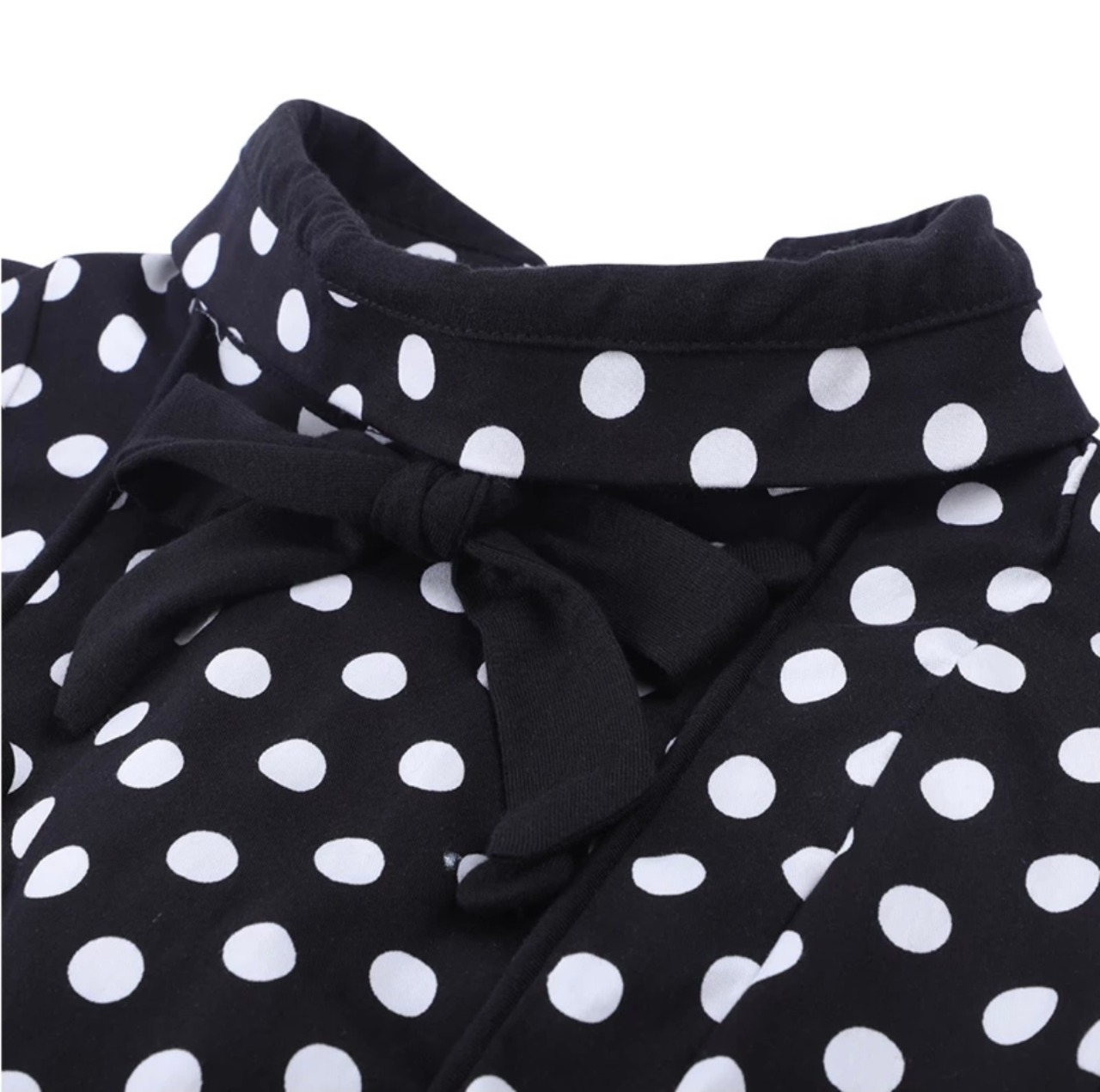 生産終了在庫のみ【即納】♡お襟におリボンのクラシカルなドットワンピース♡お嬢様 ヴィンテージデザイン 50年代 60年代