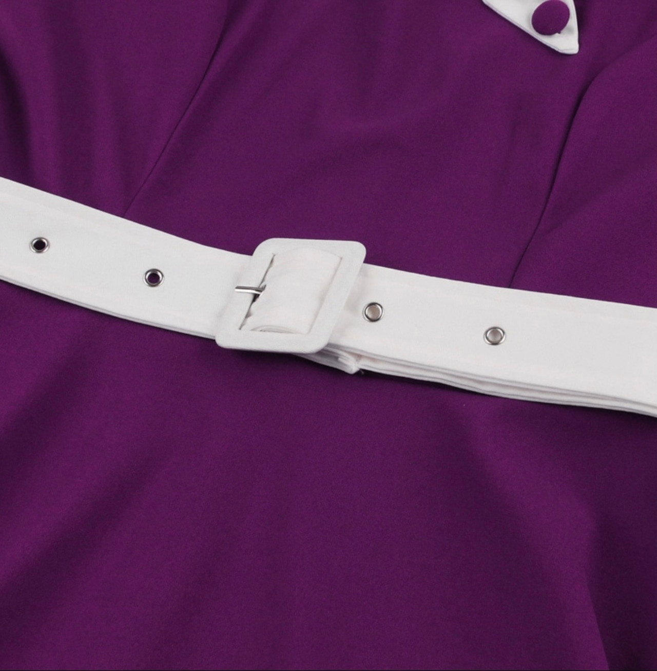 お襟やお袖がボタンカフになったパープルのお洒落なベルト付きワンピースになります♡