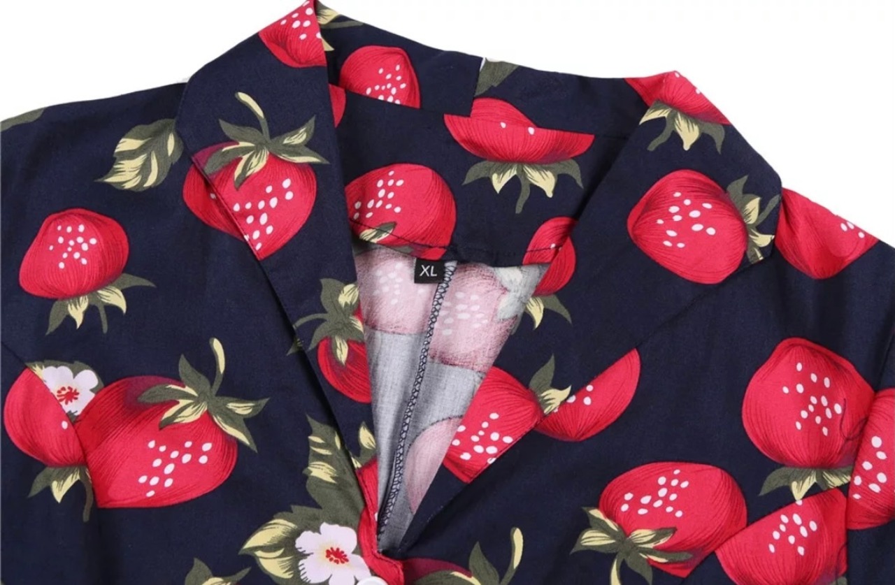 送料無料【即納】♡イチゴ柄の60年代70年代ヴィンテージデザインワンピース♡大人可愛い レトロ ストロベリー