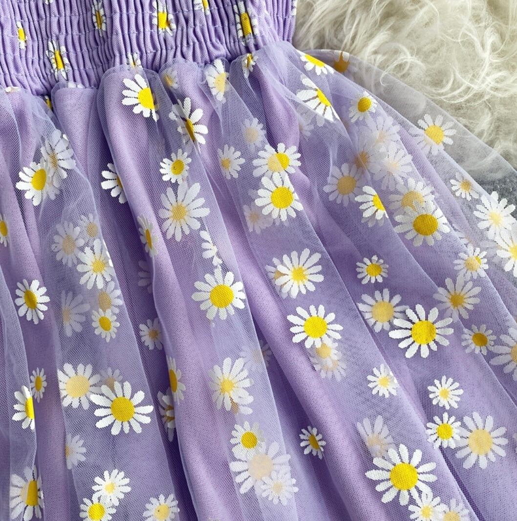 送料無料【即納】♡たっぷり伸縮性な幅広いサイズ対応 ラベンダーカラー お花オーガンジーレースのシャーリングワンピース♡楽ちん 日常 リゾート カジュアル 大人可愛い デート