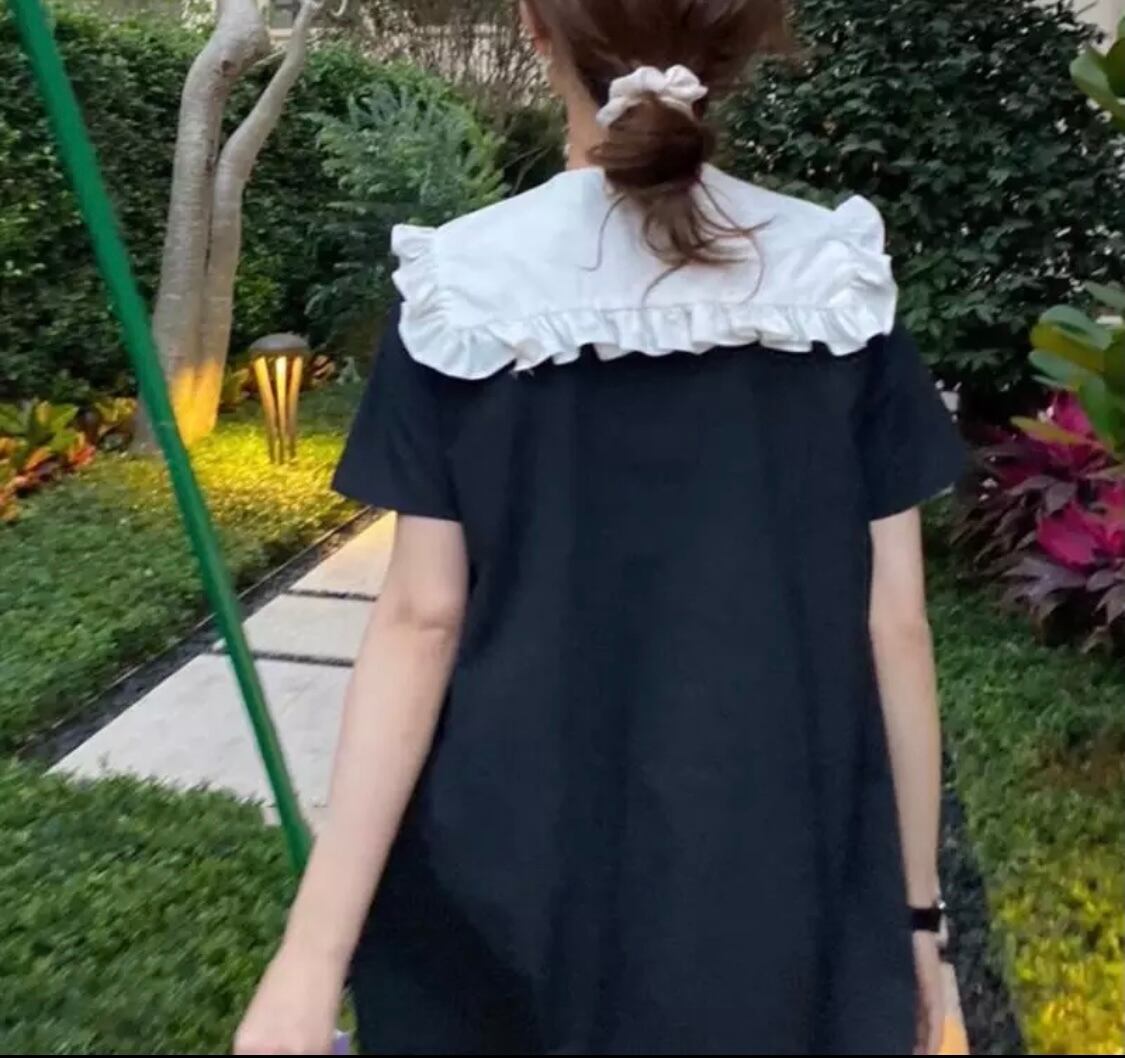 送料無料【即納】3カラー♡大人可愛い ざっくり楽ちん着脱のセーラーワンピース♡フリル 襟 お襟 半袖ワンピース セーラーカラー
