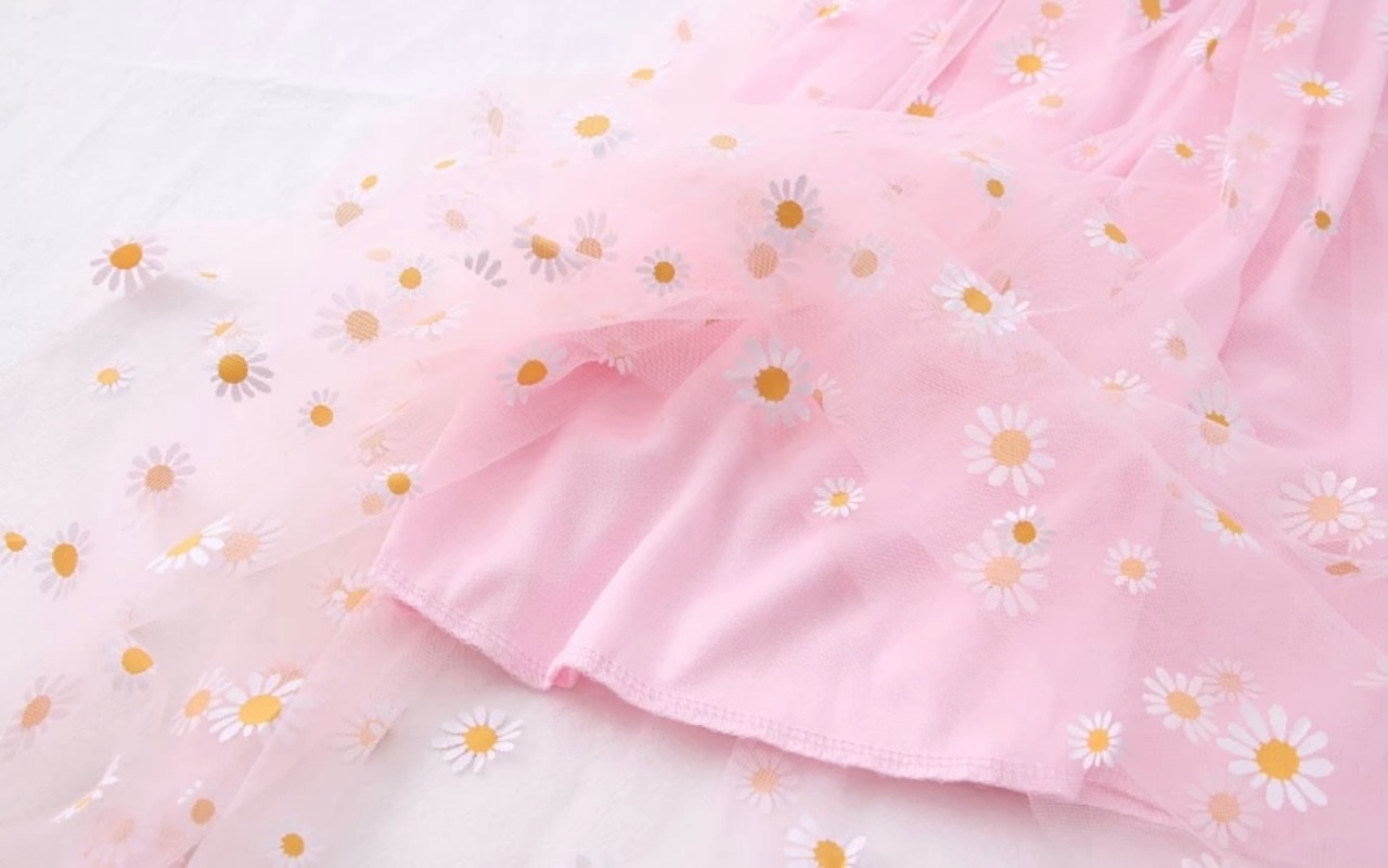 オーガンジーレースに花があしらわれているベビーピンクカラーのキャミソールワンピースになります♡