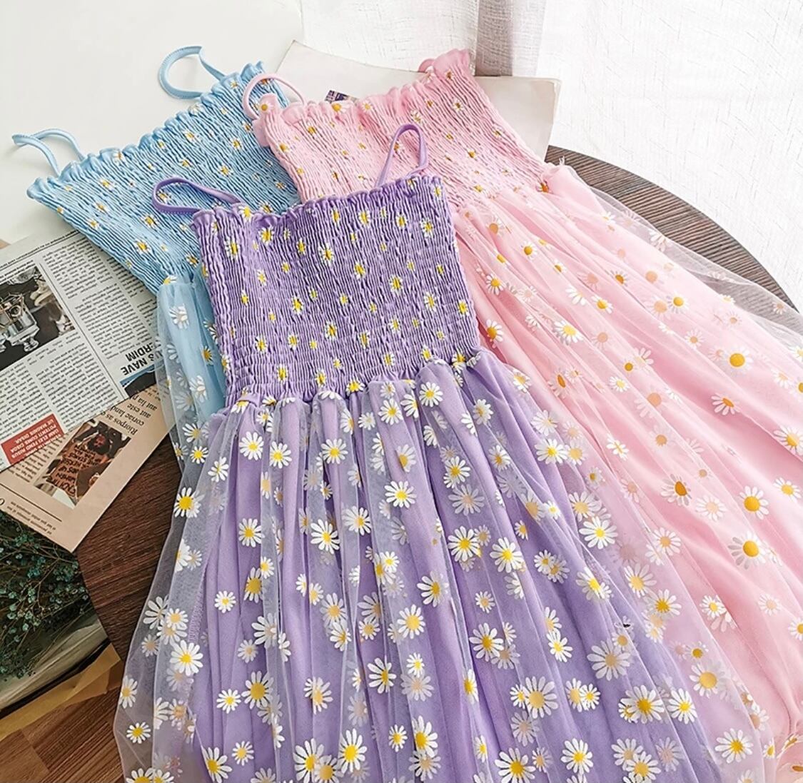 オーガンジーレースに花があしらわれている水色のキャミソールワンピースになります♡