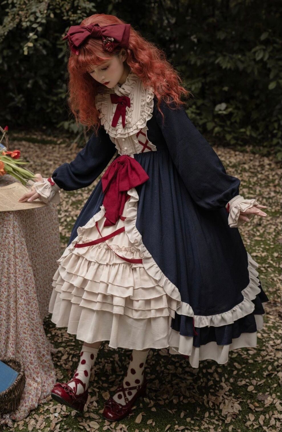 送料無料【即納】♡森ガールロリータのお人形さんドレス♡プリンセス お茶会 お嬢様 クラシカル フリル ビクトリア調整 ルネサンス ワンピース ワンピ ロリータ