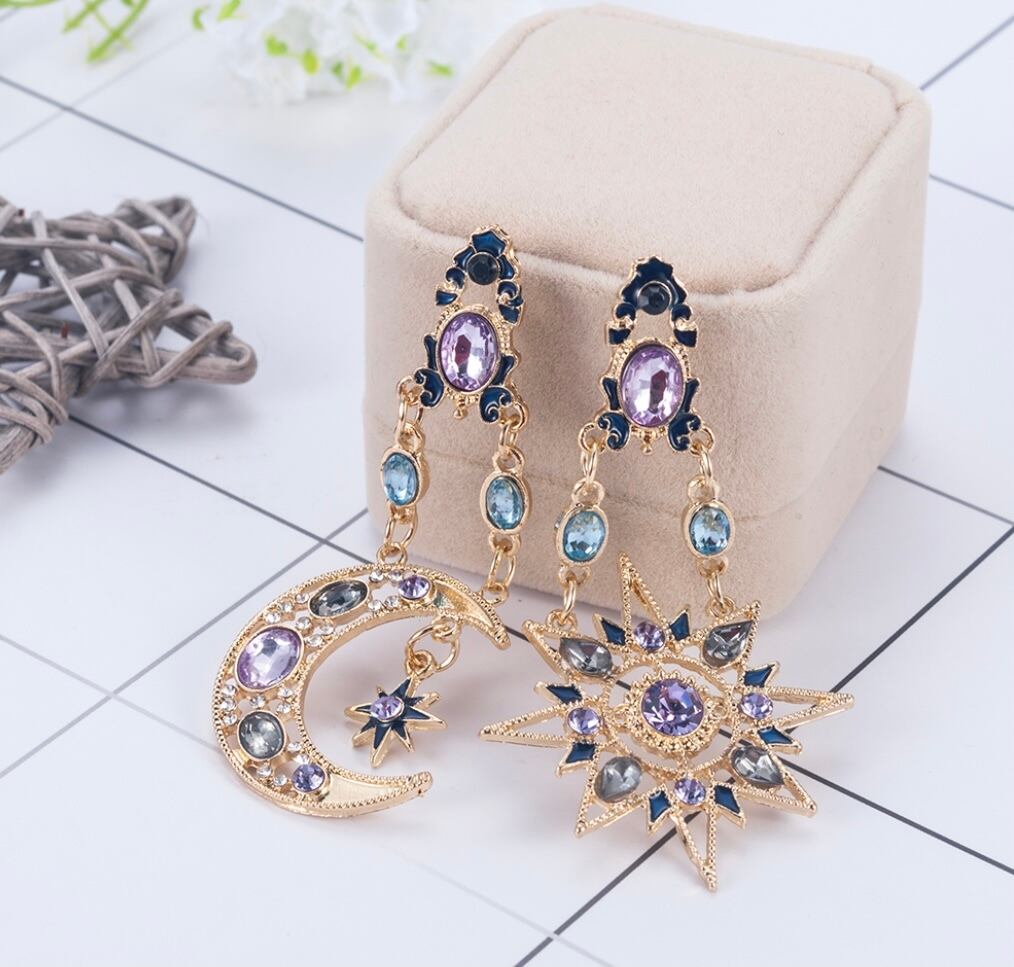 星と月が対になったパープル系のピアスになります♡
