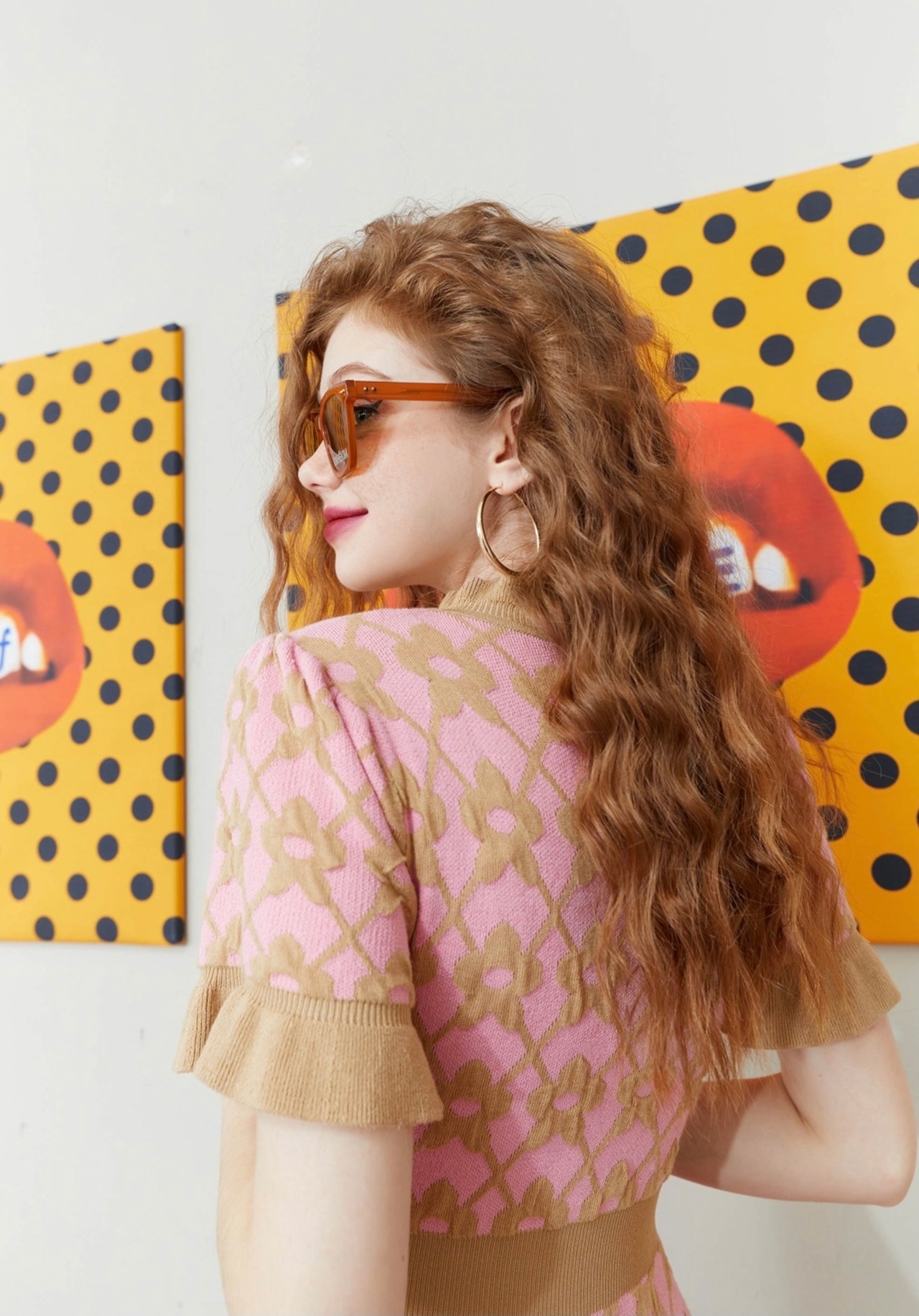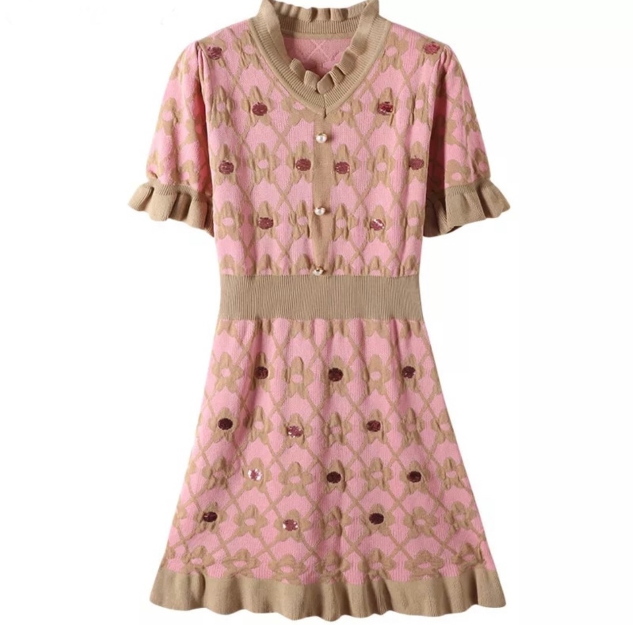 こちらピンク×ベージュのお色味の黄金比が可愛いお花柄のニットワンピースになります♡