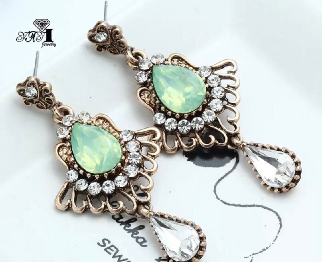 【即納】♡ヴィンテージデザインのドロップピアス♡透明 ストーン グリーン