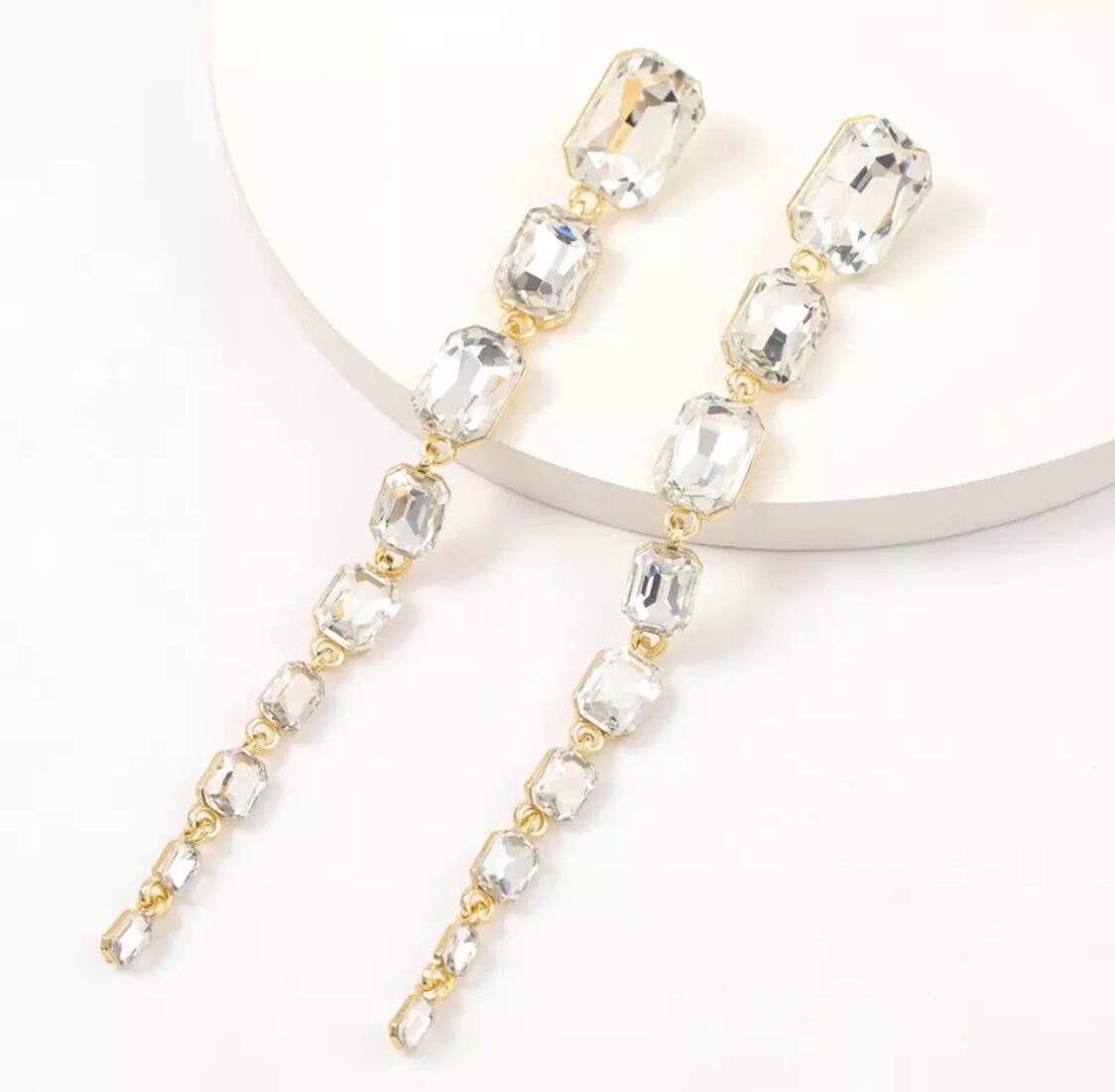 スクエアのストーンが連なったドロップピアスになります♡