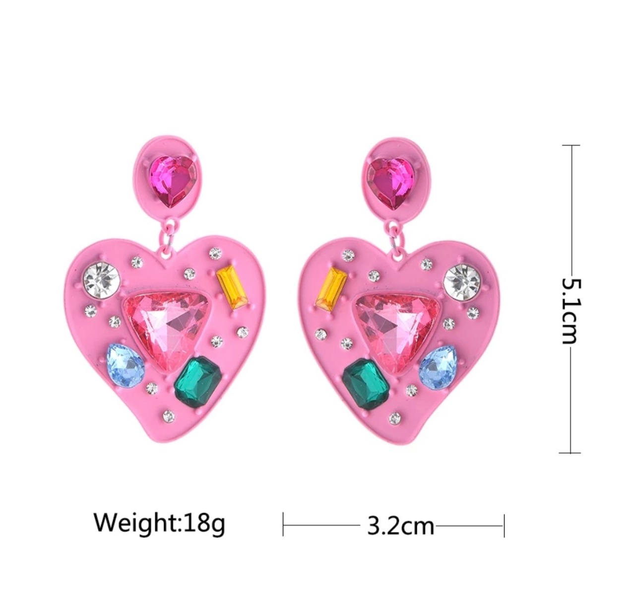 Barbieちゃんがしていそうなピンクハートにラインストーンが散りばめられたピアスになります♡