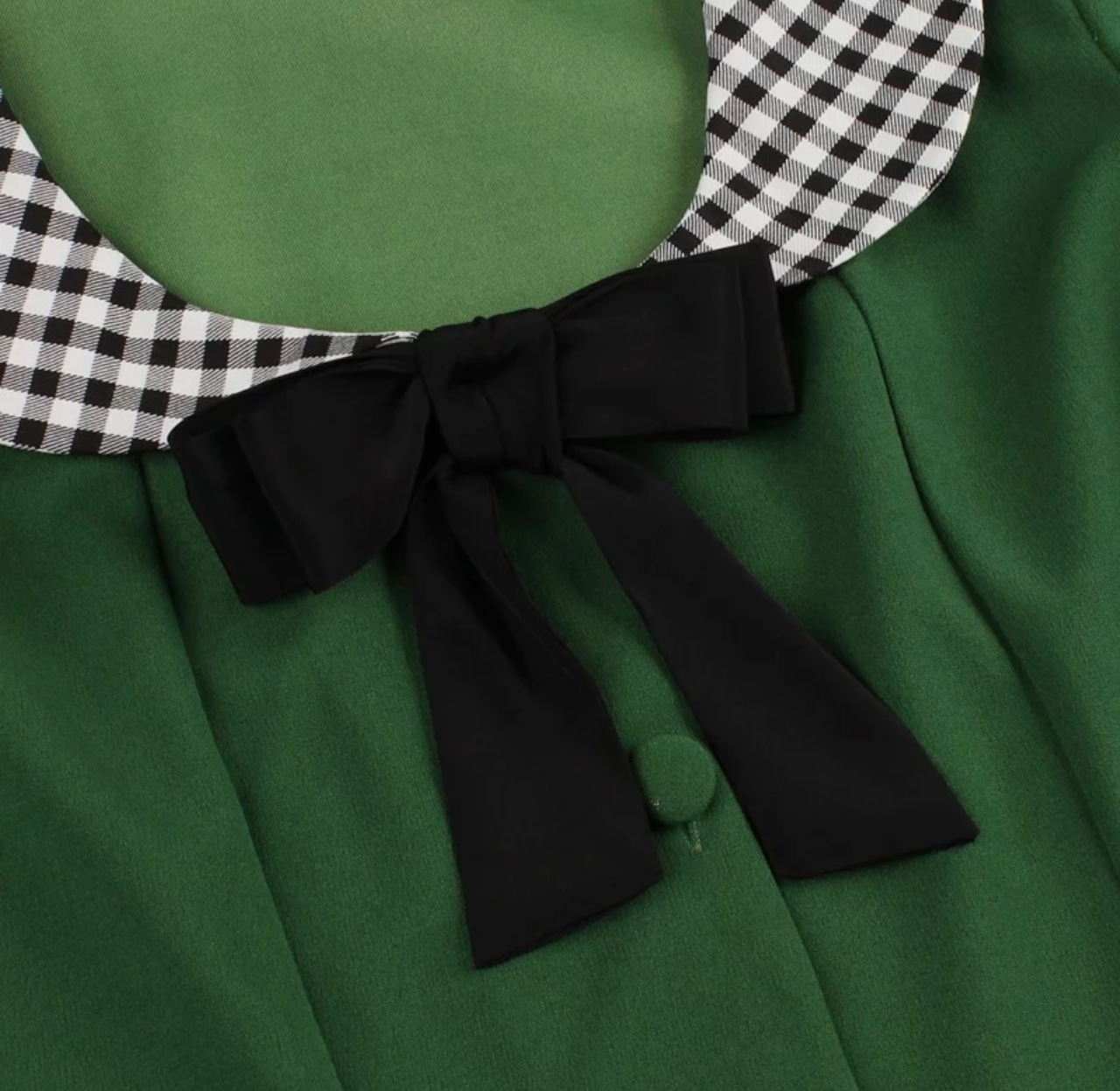 【即納】♡50年代ヴィンテージスタイルのスクエアカーラーグリーンワンピース♡レトロ フレンチレトロ クラシカル お嬢様 大人可愛い