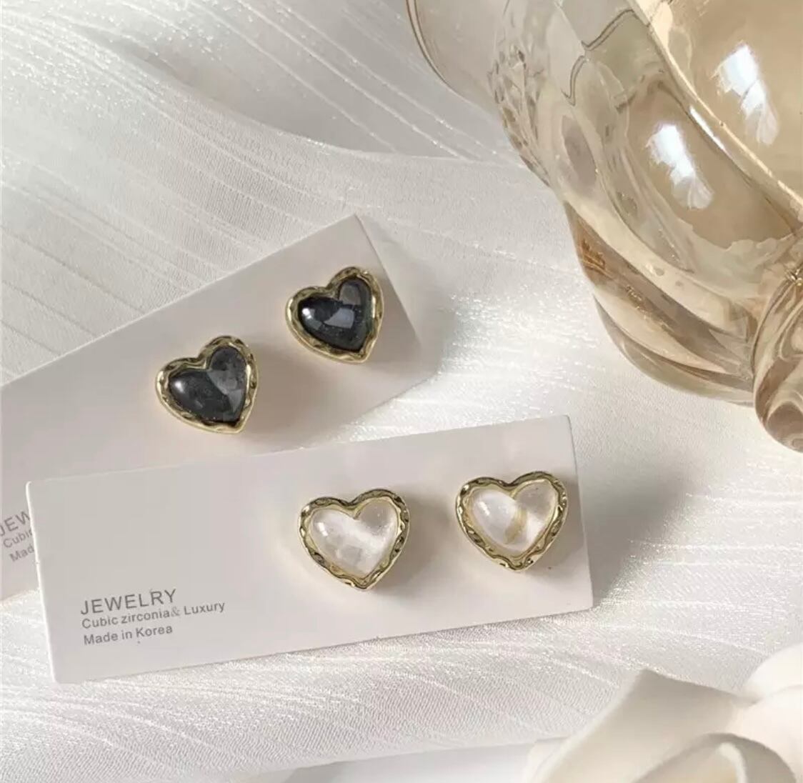 【即納】2カラー ピアス♡ハートのヴィンテージデザインピアス♡フレンチレトロ レトロ ブラック ホワイト