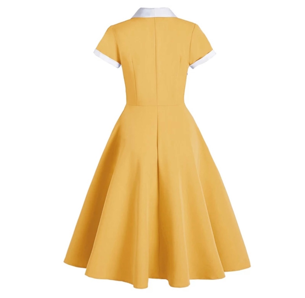 落ち着いたイエローのレトロなハイウエストワンピースになります♡