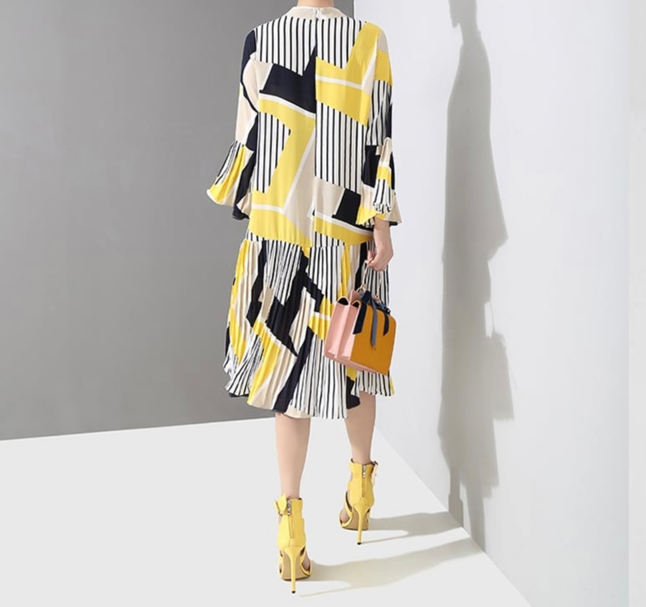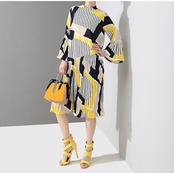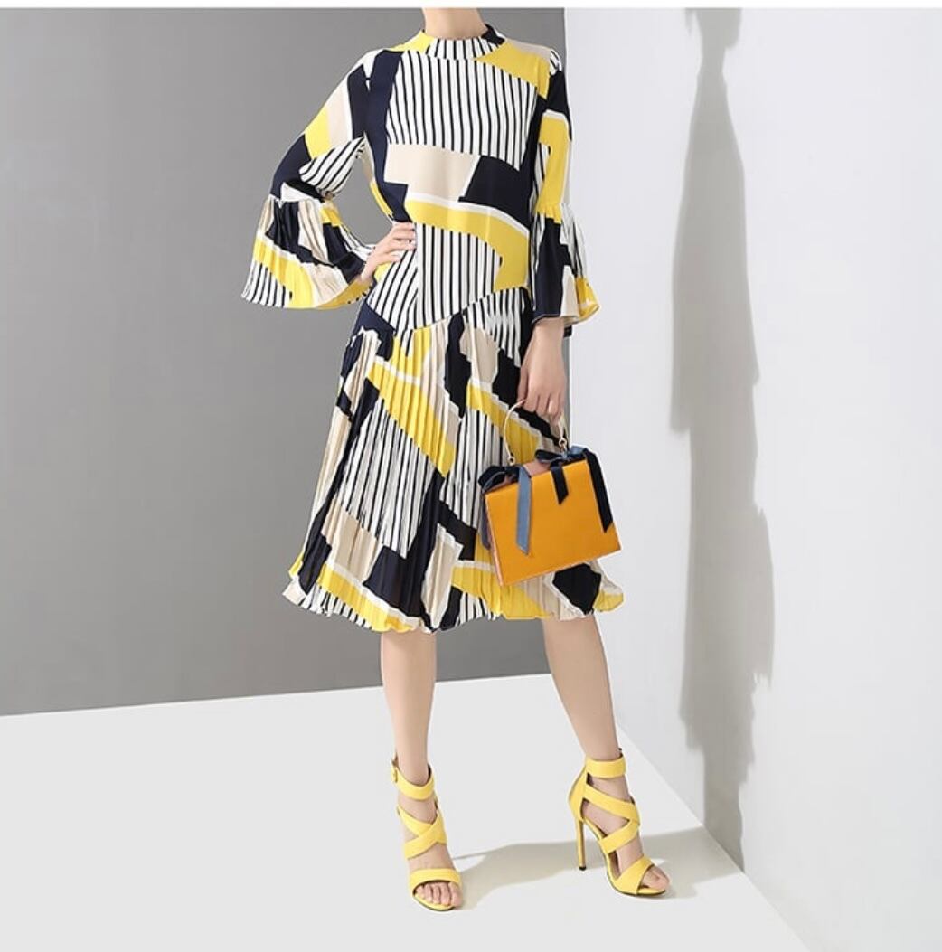 【即納】♡ おしゃれ配色&プリーツの大人綺麗なワンピース♡