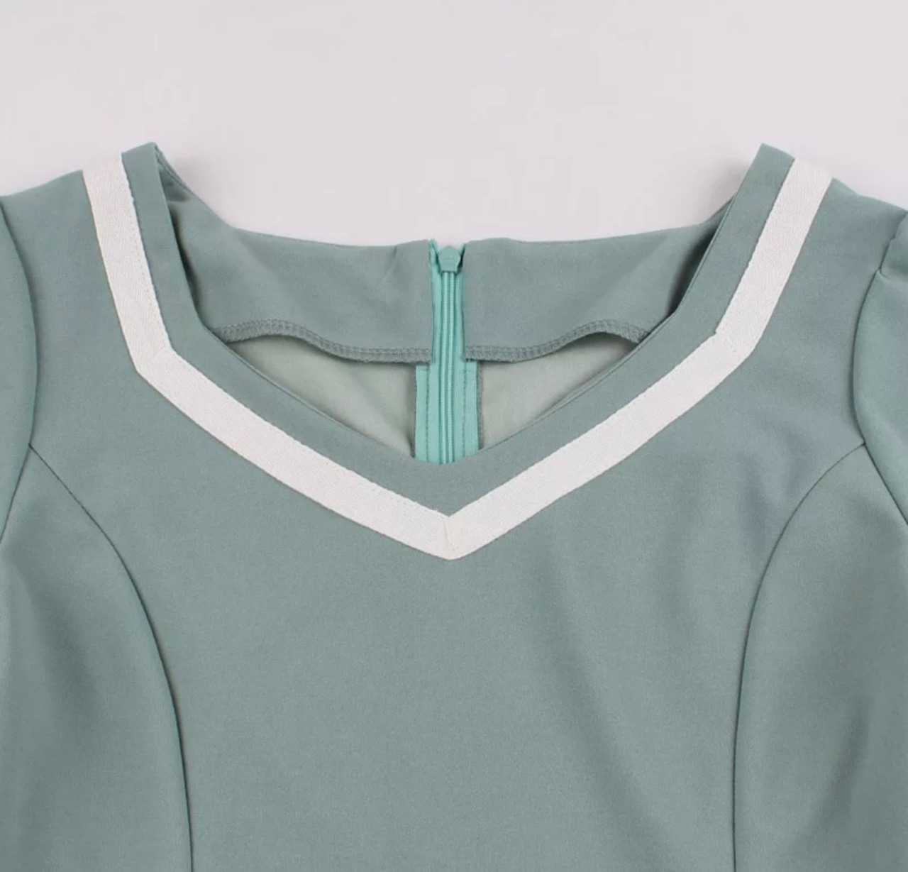 【即納】 50年代ファッション ♡襟白ライン入りのミントグリーン×ふんわり薔薇柄のロカビリーワンピースドレス ベルト付き♡