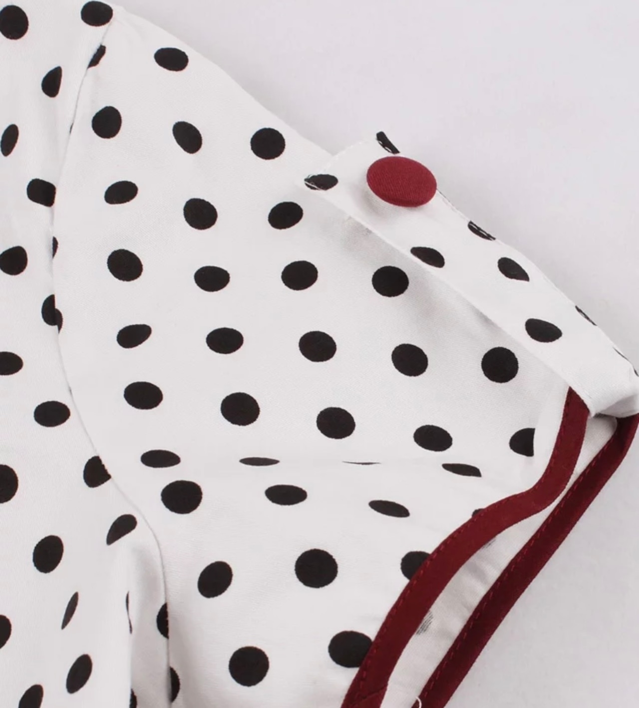 【即納】♡ホワイト×ブラックのポルカドットのロカビリーワンピース♡ 50年代 60年代 アメリカンガール レトロ フレンチレトロ フレンチガーリー ブリジットバルドー