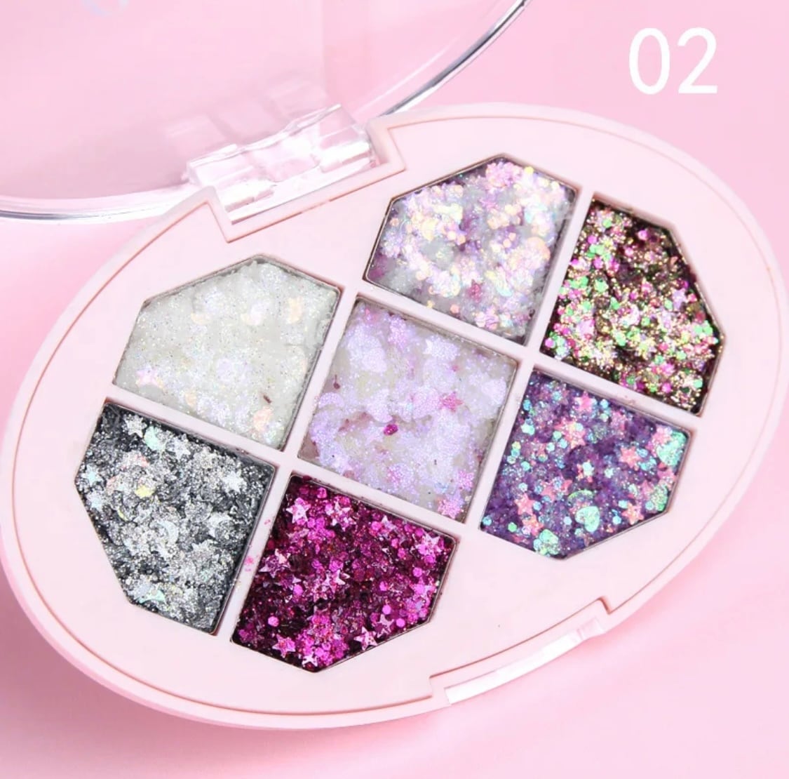 【即納】2パターン 7色パレット ♡ ゆめかわPOPメイク cmaaduのラメアイシャドウ パレット ♡ハート 月 星 ラメ 発色 優秀コスメ グリッター